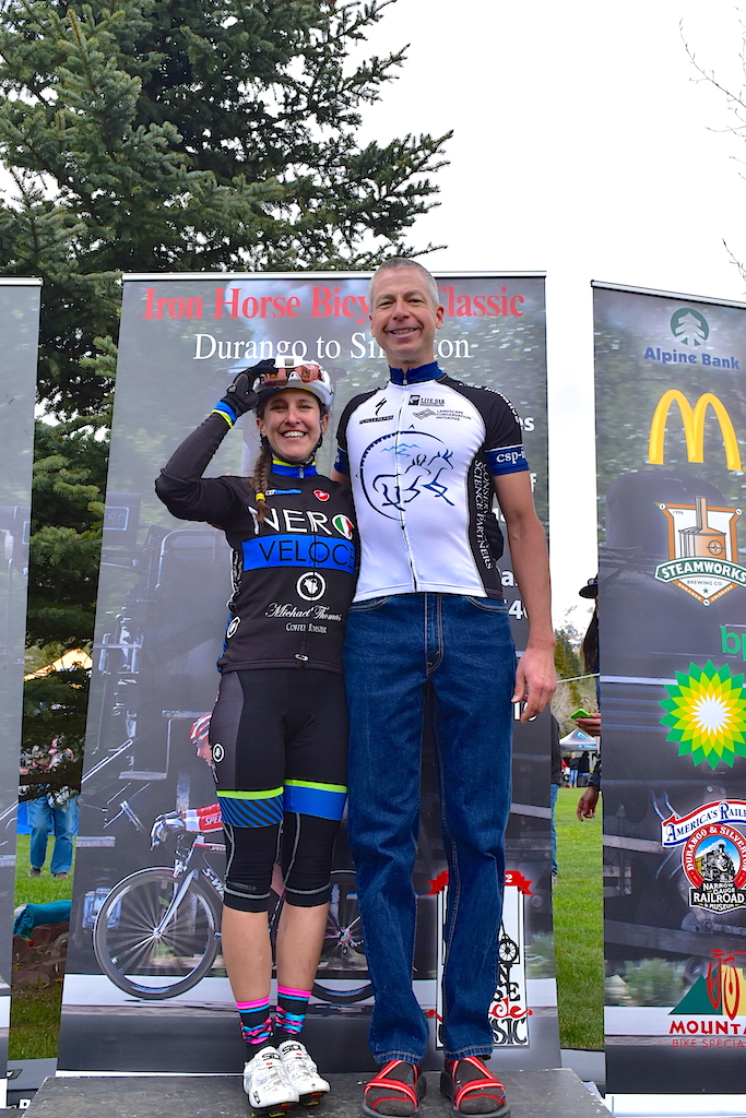 It is inspiring. I think the most incredible thing is experiencing the joy of others, and seeing their accomplishments. Mindy Caruso from Albuquerque won the womens race in remarkable fashion. I was so happy for Sepp Kuss, winning his hometown-race. Howard Grotts, another hometown hero, would win the mountain bike race the next day and win the inaugural King of the Mountain competition. Ned Overend was there representing the best in the cycling tradition. At 61, his experience and strength is awesome. Iron Horse turned me on to so many inspirational stories. You learn more about the triumph of the human spirit. On our podium Sepp called out “everybody up” for us to gather around him. He wanted us all on the top step with him. I feel lucky to be a part.