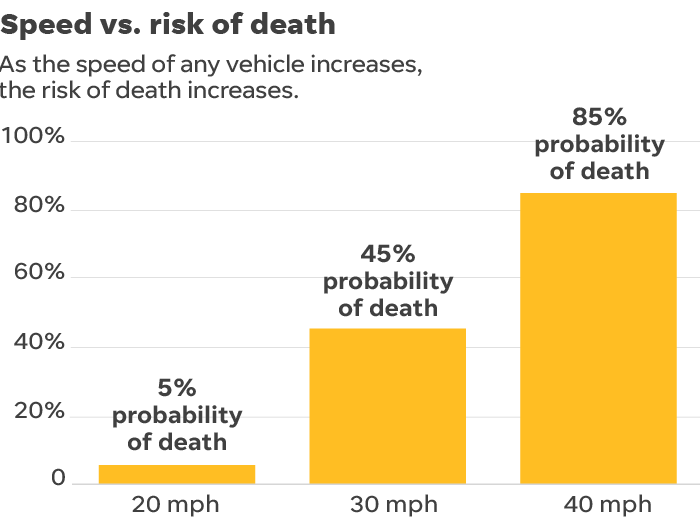 …pedestrians are 2-3 times more likely to suffer a fatality when struck by an SUV or pickup truck than when struck by a passenger car…The higher risk of fatality associated with being struck by an SUV or pickup also applies to a vulnerable population — children. In a study conducted by Columbia University, school-age children (5-19 years old) struck by light trucks were found to be twice as likely to die as those struck by passenger cars. The risk was even greater for the younger set (ages 5-9); their fatality risk is four times greater from SUVs and pickup trucks than from passenger cars. –Detroit Free Press, “Death on foot: America’s love of SUVs is killing pedestrians”